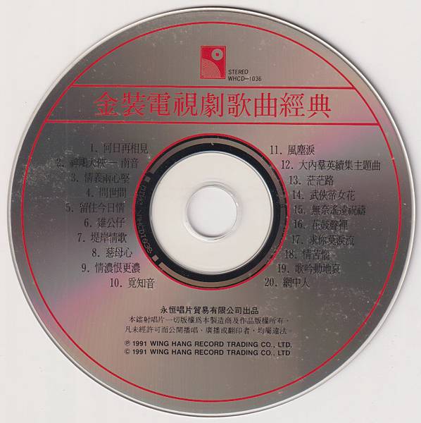 《金裝電視劇歌曲經典》是永恆唱片於1991年發行的精選合輯。當初並沒有收藏這張CD的計畫,記得有一陣子突然很懷念小時候看過的港劇,因此對港劇歌曲特別有興趣,不過挺可惜的是,我以為就算《金裝電視劇歌曲經典》所列曲目都很陌生,但80年代的港劇正是我們走過最輝煌的年代,再怎麼樣也不至於沒聽過,殊不知,整張20首曲目,只有第一首《神鵰俠侶》主題曲【何日再相見】略為耳熟,其他則毫無所悉。這張專輯看似合輯,但其實是以張德蘭主唱過的電視曲為主軸,我必須承認我對她的人與作品都非常陌生,所以沒有辦法多做評論,只能說這是一張很偶然結緣的專輯。