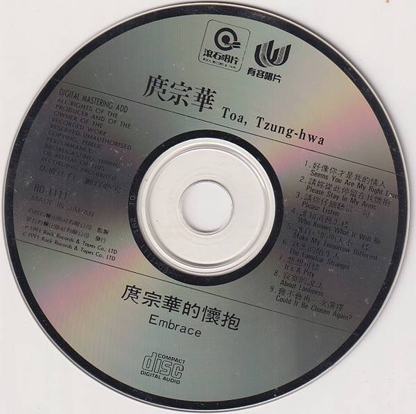 《懷抱》是庹宗華於1991年發行的第一張個人專輯。1991年是庹宗華演藝生涯相當燦爛發光的一年,除了收割80年代多部膾炙人口的電影名聲,在這一年更是一口氣發行了兩張專輯,不過這可能跟有容製作公司的合作關係轉移有關連,以致這兩張間隔相近的專輯,隸屬於兩家不同的發行唱片公司。聽了庹宗華《懷抱》《為你擔心》這兩張專輯,個人感覺《為你擔心》比較好聽,唱功也比《懷抱》明顯增長,當然還是要再強調的一點,他其實還算能唱,音色跟技巧都還算及格,甚至之上。《懷抱》專輯曲目對我來說多半陌生,但30多年後再次聽到【請你從此停留在我懷抱】,才突然熟悉感湧現,很多似曾相識的音符、甚至畫面,一下子湧入腦海中,這首歌還不錯聽,翁孝良作的曲,值得推薦。